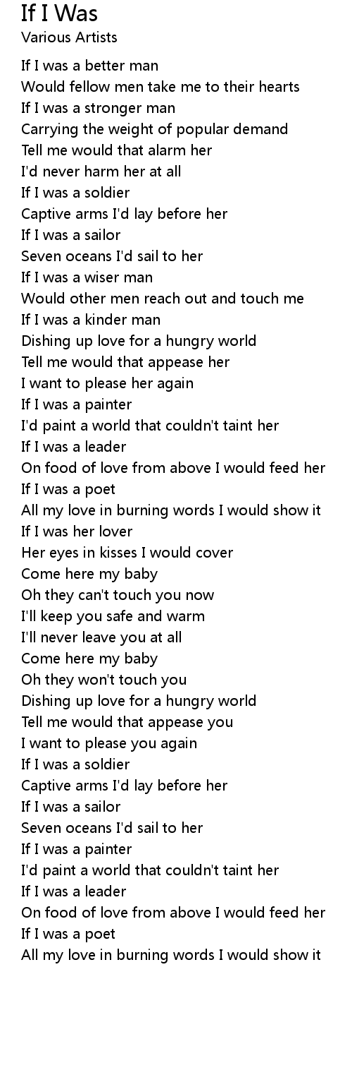 If I was a kinder man |
