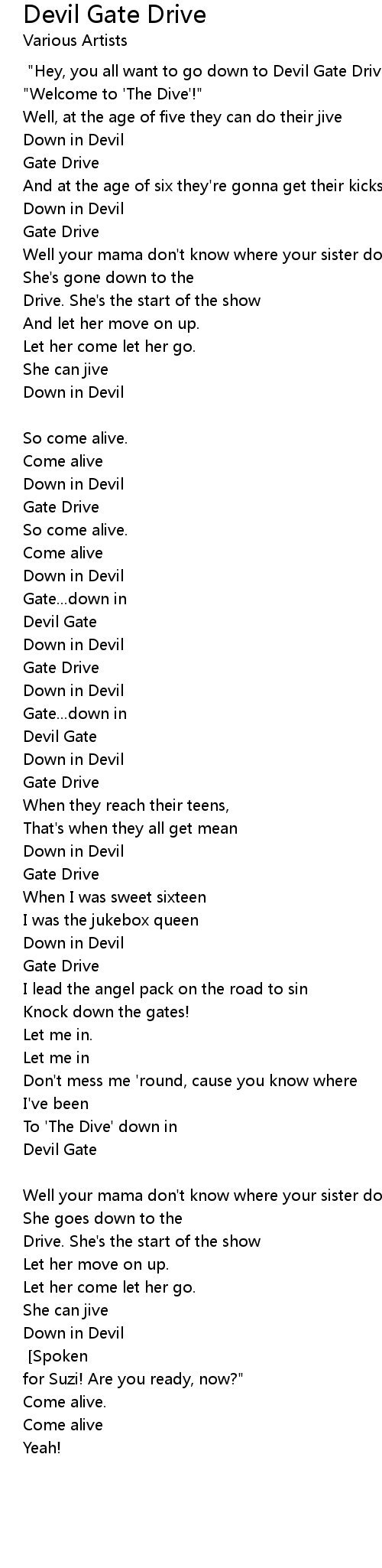 [Spoken] "Hey, you all want to go down to Devil Gate Drive? Well, come on"! "Welcome to 'The Dive'!"