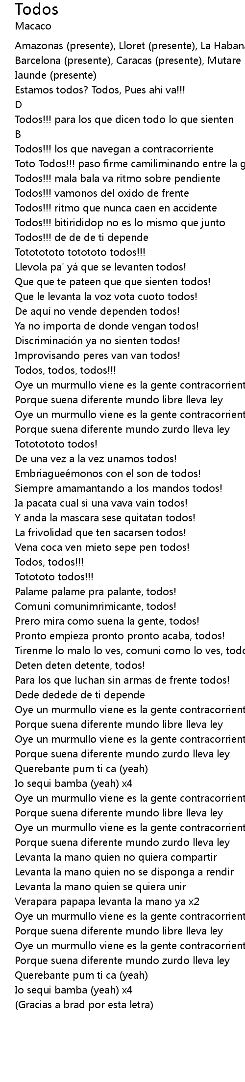 | Barcelona presente, Caracas presente, Mutare presente, | |