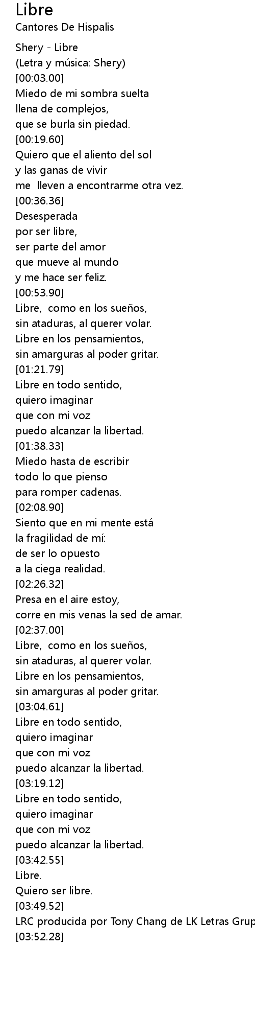 | [03:50.43] | LRC producida por Tony Chang de LK Letras Grupo |