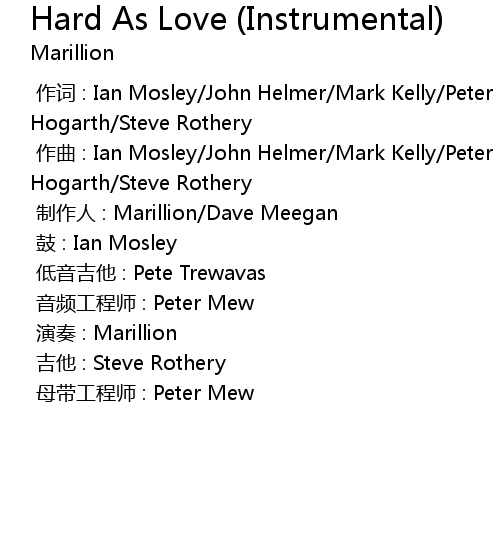 | [00:00.000] | 作词 : Ian Mosley/John Helmer/Mark Kelly/Peter Trewavas/Steve Hogarth/Steve Rothery |