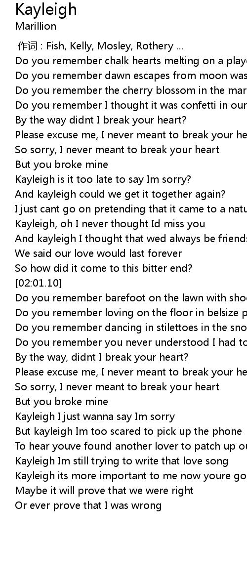 | [01:05.10] | Kayleigh is it too late to say Im sorry? |