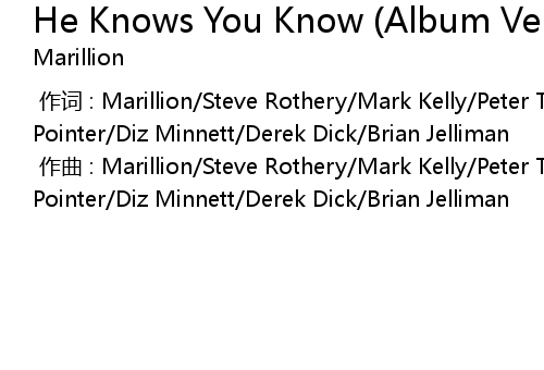 | [00:00.000] | zuò cí : Marillion Steve Rothery Mark Kelly Peter Trewavas Michael Pointer Diz Minnett Derek Dick Brian Jelliman |