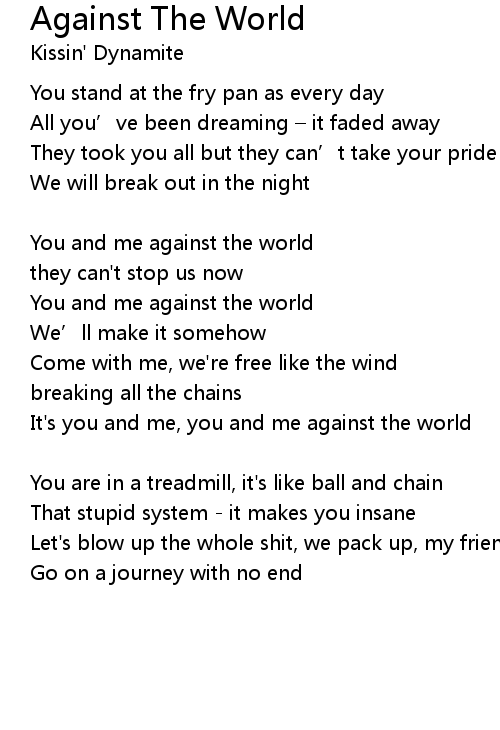 | It' s you and me, you and me against the world | |