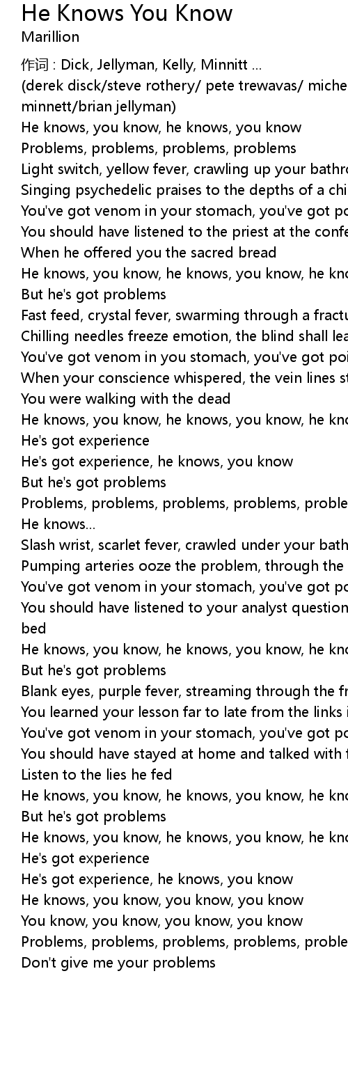 | He knows, you know, he knows, you know, he knows, you know | |