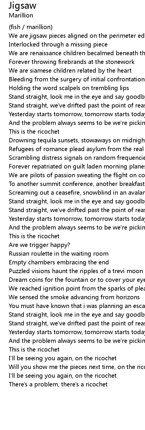 Will you show me the pieces next time, on the ricochet |