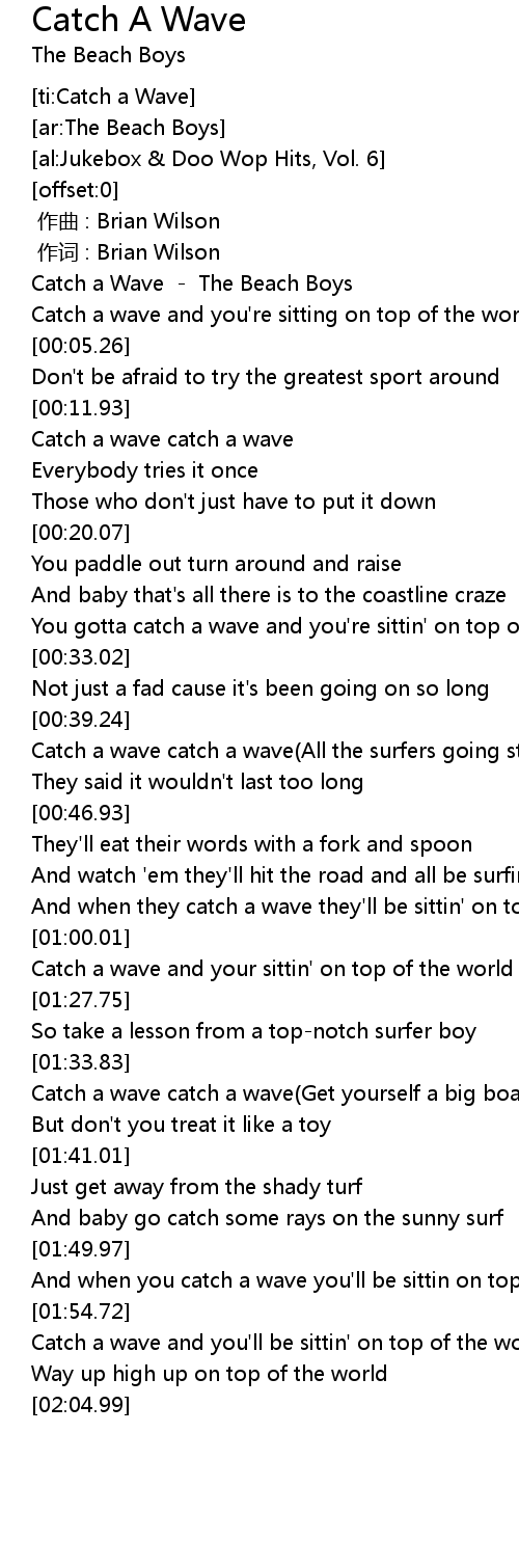 | [00:00.43] | Catch a Wave - The Beach Boys |