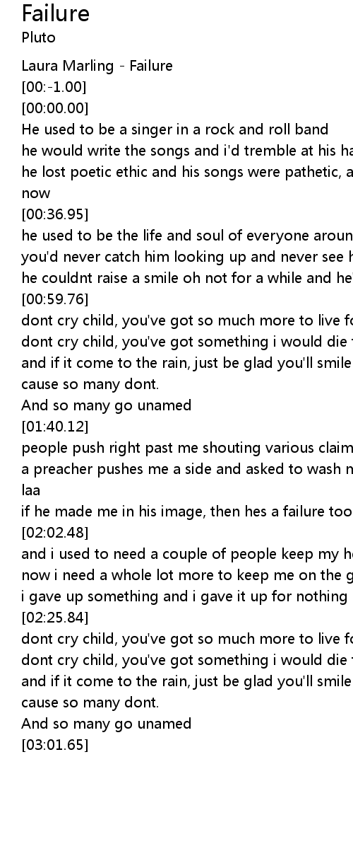 | [00:53.17] | he couldnt raise a smile oh not for a while and he's a failure now |