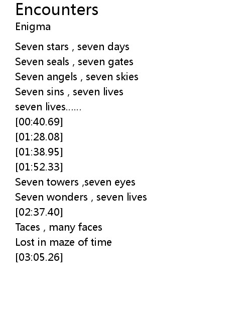 | [02:26.63] | Seven wonders , seven lives |
