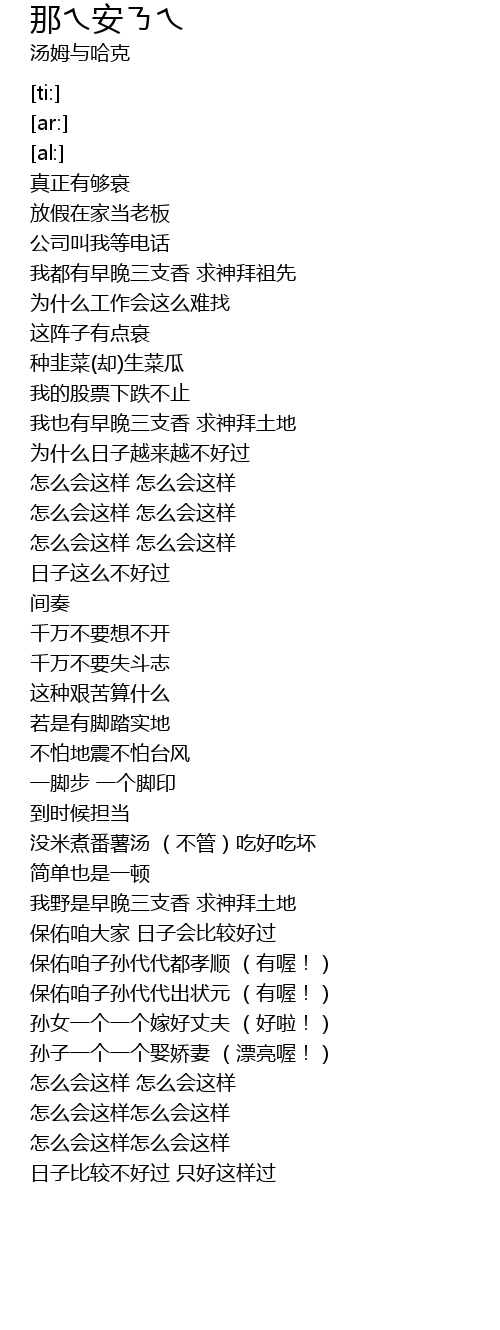 | [02:13.65] | 保佑咱大家 日子会比较好过 |