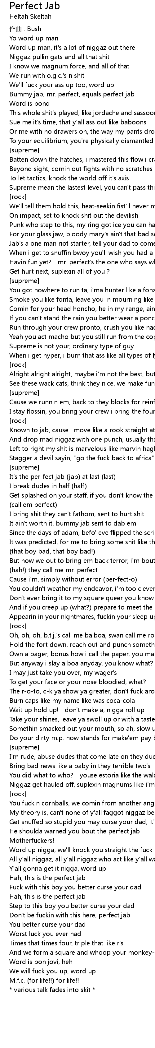 | Havin fun yet? mr. perfect' s the one who says who | |