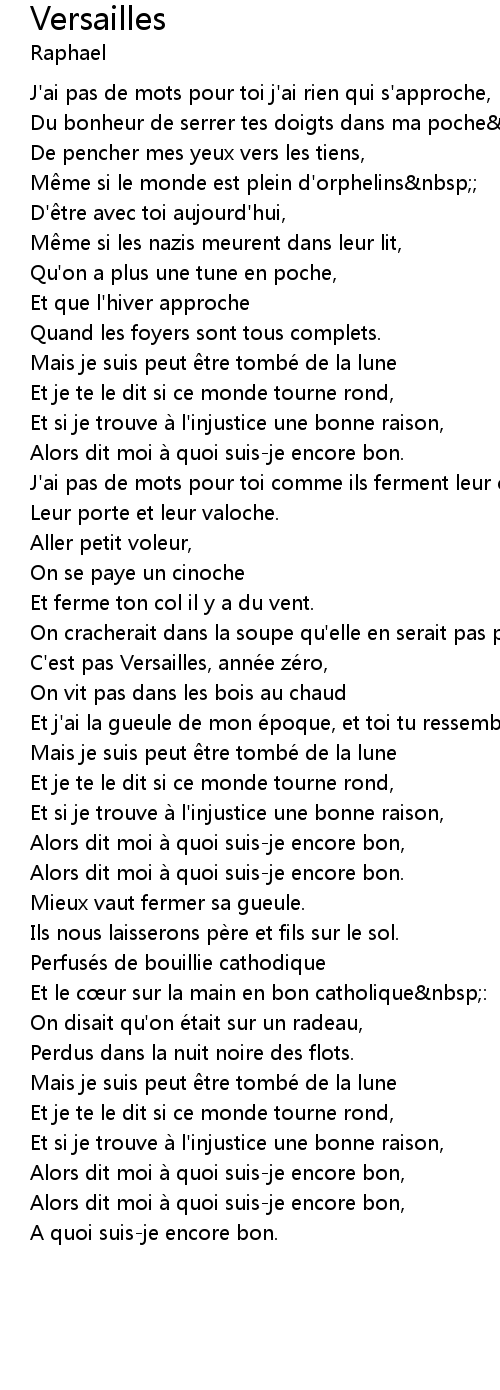 | Et j' ai la gueule de mon e poque, et toi tu ressemble a ta me re | |