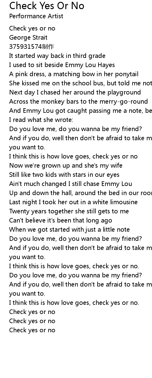 | [02:36.99] | I think this is how love goes, check yes or no. |