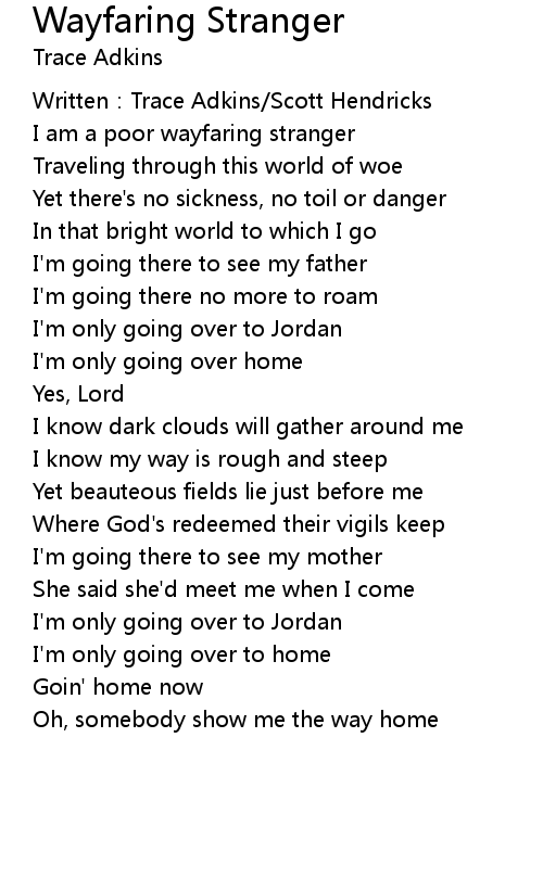| I am a poor wayfaring stranger | |