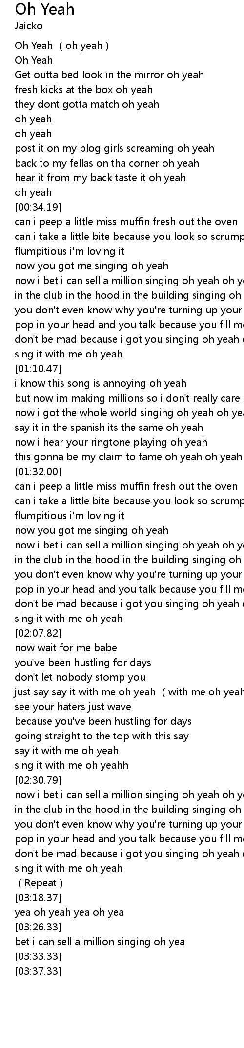 | [02:14.83] | just say say it with me oh yeah with me oh yeah |
