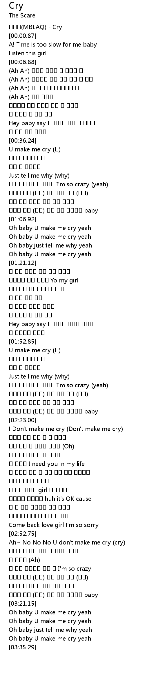 | [02:53.28] | Ah No No No U don' t make me cry cry |