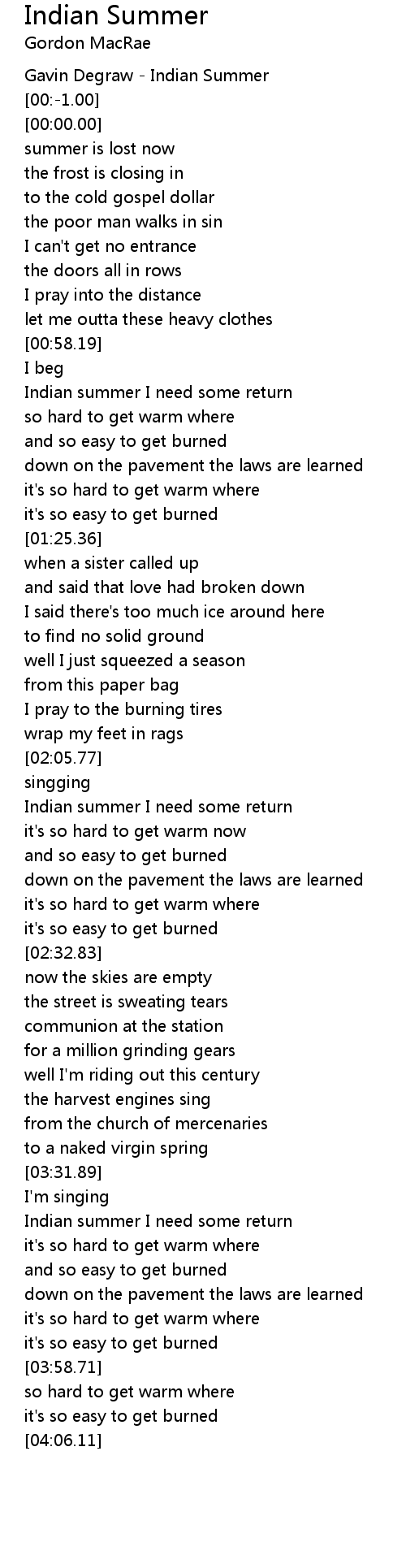 [03:33.88] Indian summer I need some return