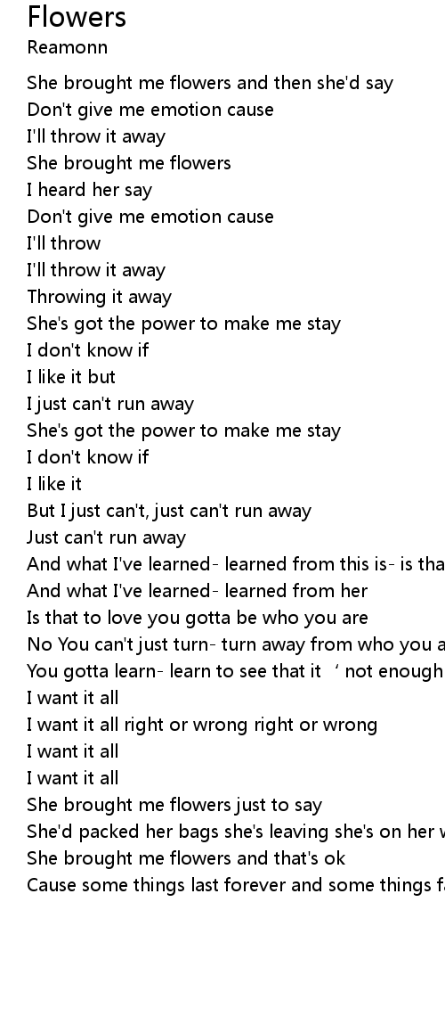 | She brought me flowers and then she' d say | |