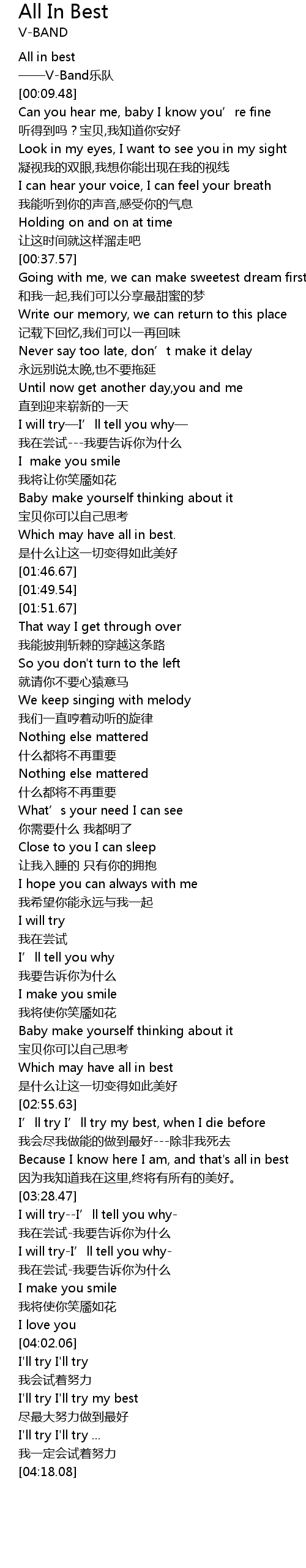 | [04:09.96] | jin zui da nu li zuo dao zui hao |