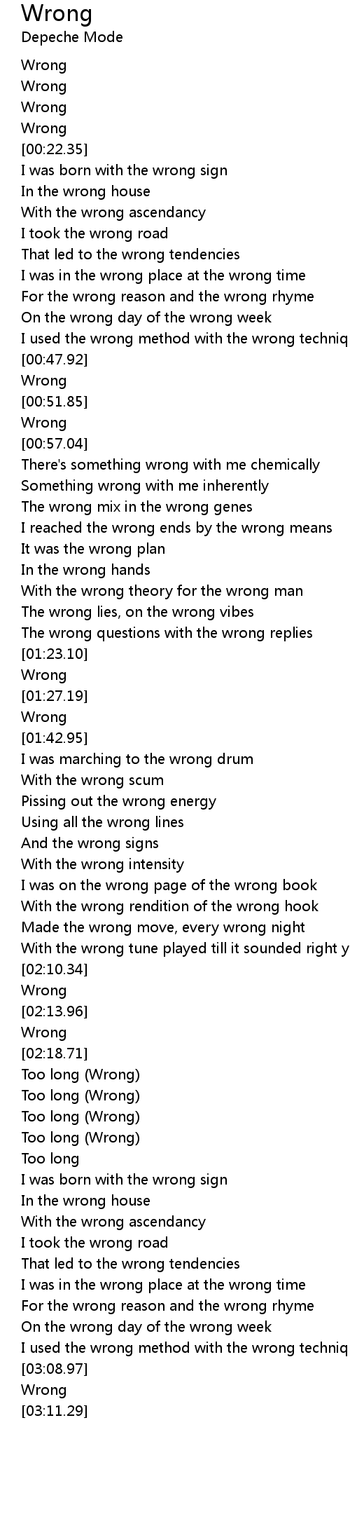 For the wrong reason and the wrong rhyme |