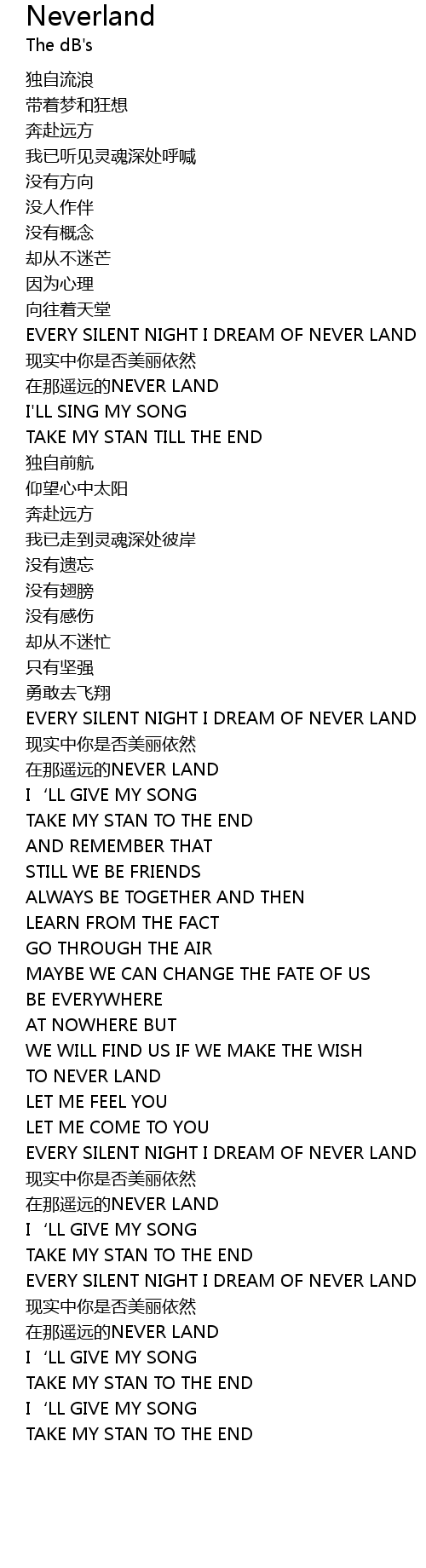 | [02:44.37] | EVERY SILENT NIGHT I DREAM OF NEVER LAND |
