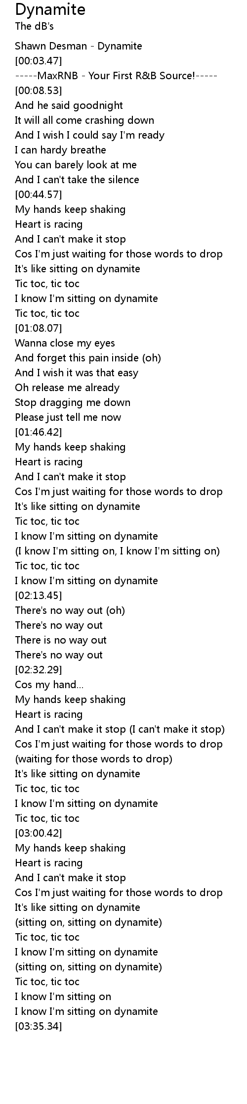 [03:15.22] (sitting on, sitting on dynamite)