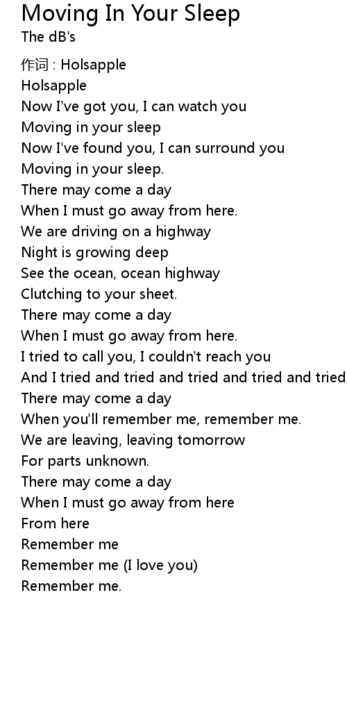 | 歌曲 | Moving In Your Sleep |