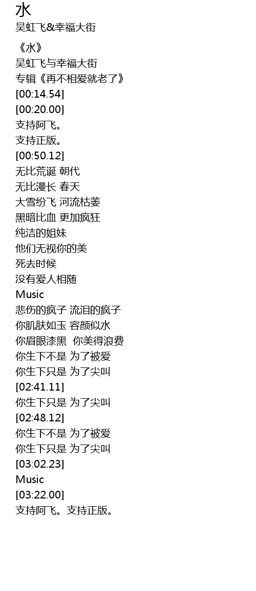 | [04:05.00] | 支持阿飞。支持正版。 |