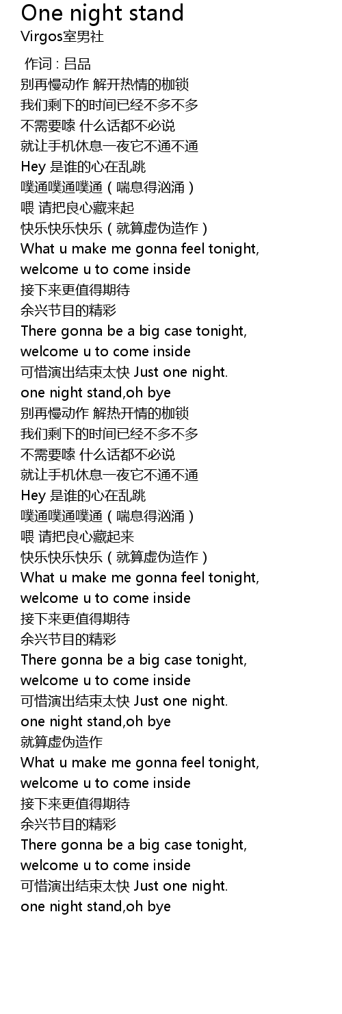 | [01:09.67] | ke xi yan chu jie shu tai kuai Just one night. |