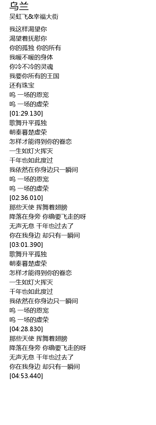 | [00:48.160] | kě wàng zhe fǔ wèi nǐ |