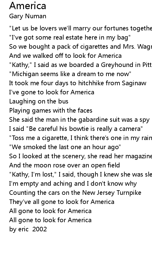And we walked off to look for America |