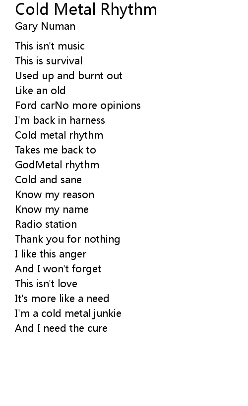 | Cold metal rhythm | |
