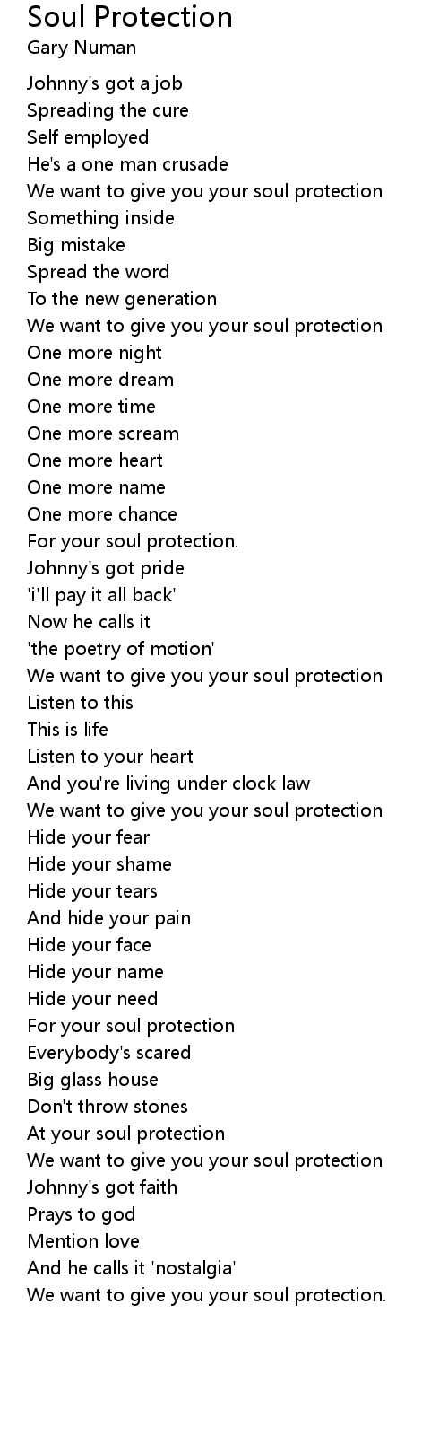 At your soul protection |
