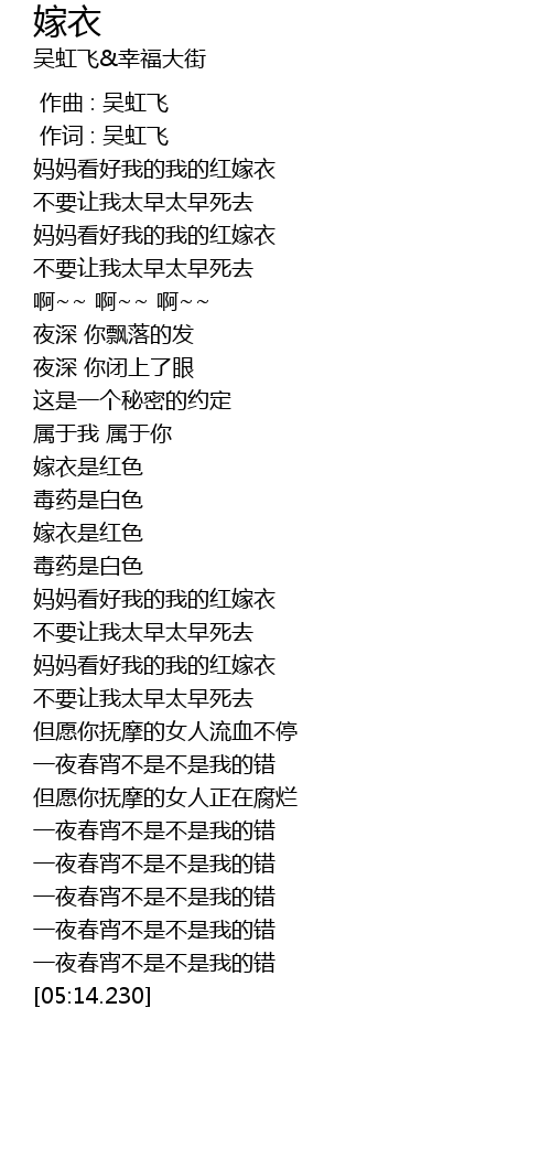 | [03:23.110] | 妈妈看好我的我的红嫁衣 |