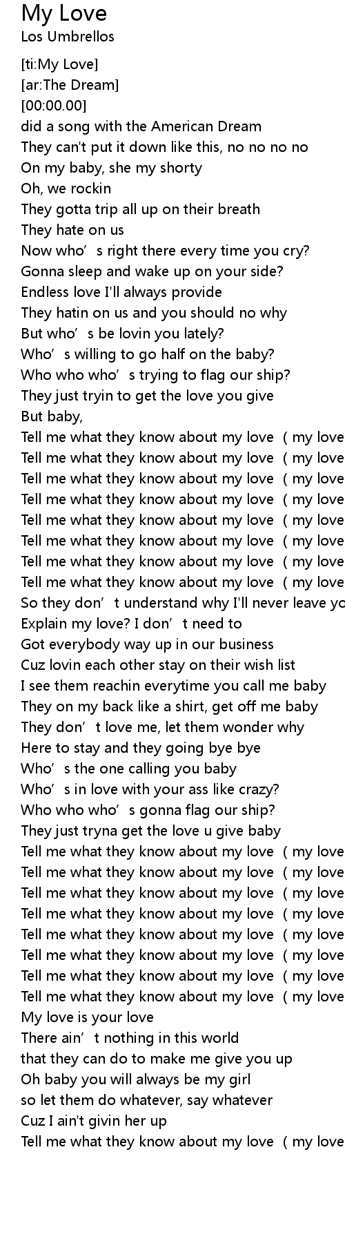 | [00:48.24] | Tell me what they know about my love my love |