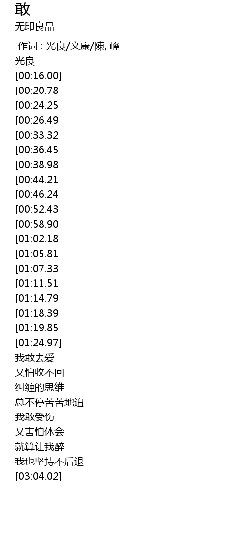 | [02:13.10][00:58.90] | 我敢去爱 |