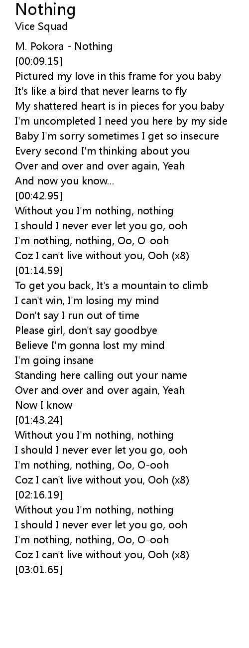 Without you I'm nothing, nothing |