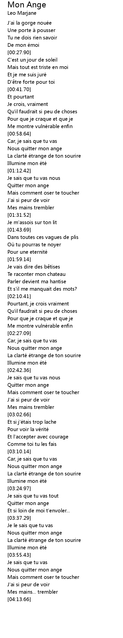 | [03:58.68] | Nous quitter mon ange |