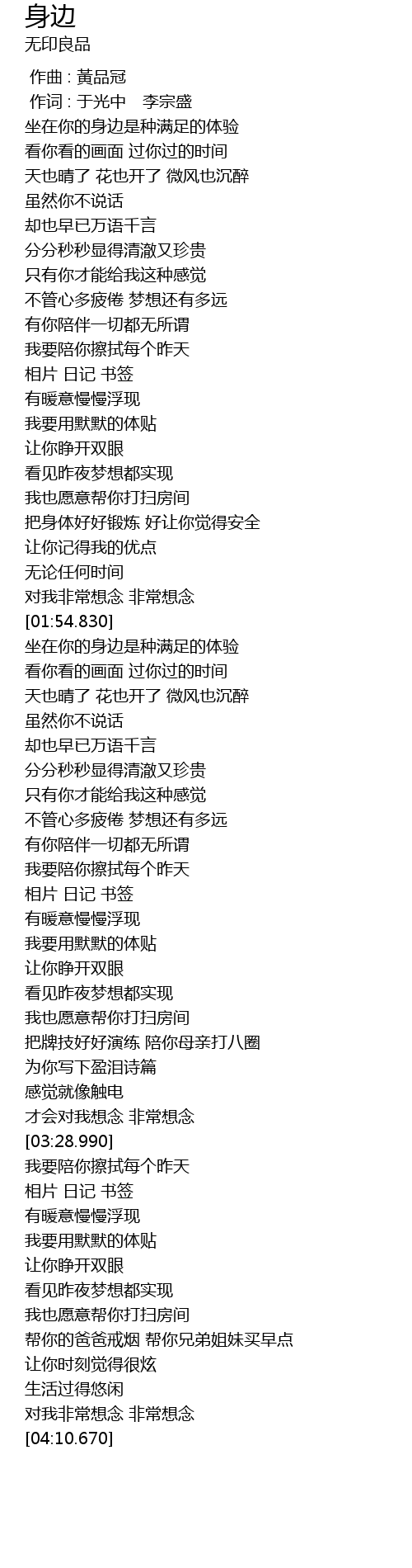 | [02:03.900] | 坐在你的身边是种满足的体验 |