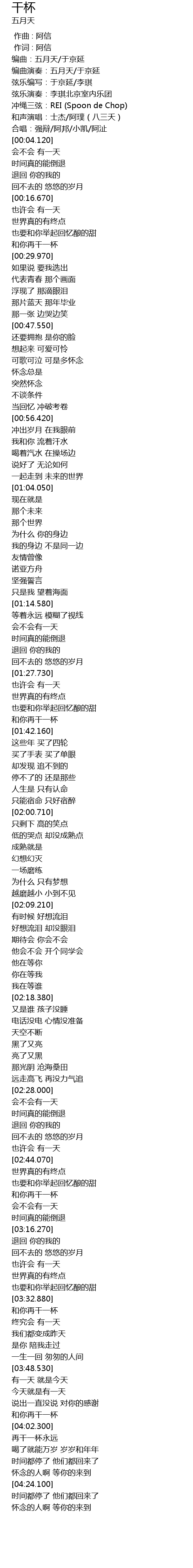 | [04:03.560] | zài gàn yī bēi yǒng yuǎn |