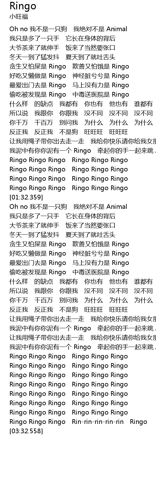 | [03:01.438] | Ringo Ringo Ringo Ringo Ringo Ringo |