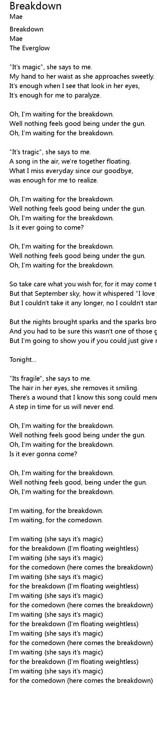for the comedown (here comes the breakdown) |