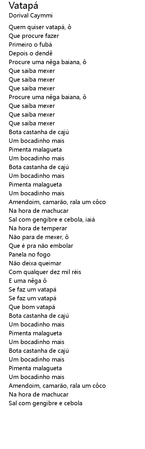 | Quem quiser vatapa, | |