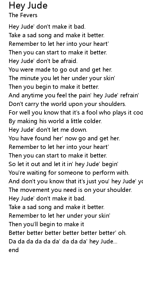 [02:05.990] So let it out and let it in' hey Jude' begin'