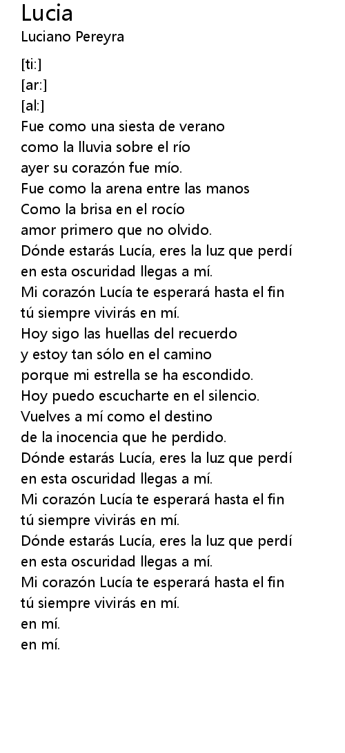 | [00:47.73] | Dónde estarás Lucía, eres la luz que perdí |