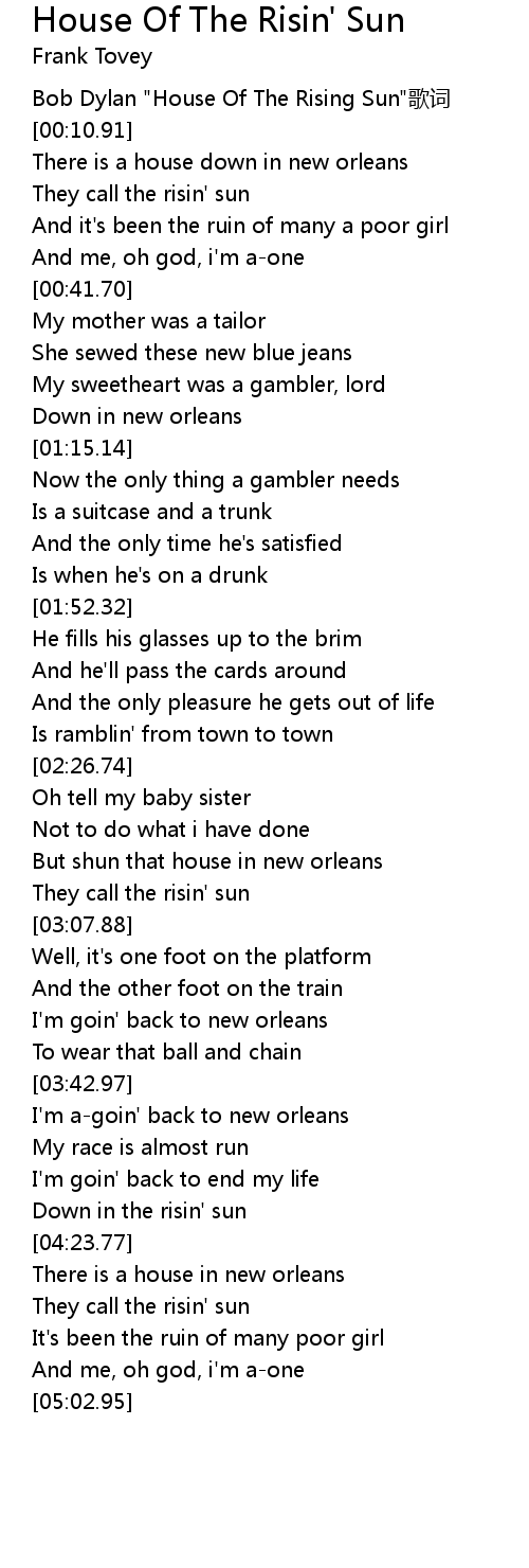 | [00:05.92] | Bob Dylan " House Of The Rising Sun" gē cí |