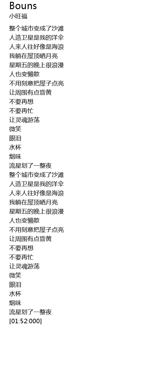 | [01:21:801] | 我躺在屋顶晒月亮 |