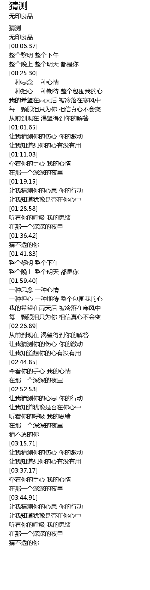 | [01:37.24] | 猜不透的你 |