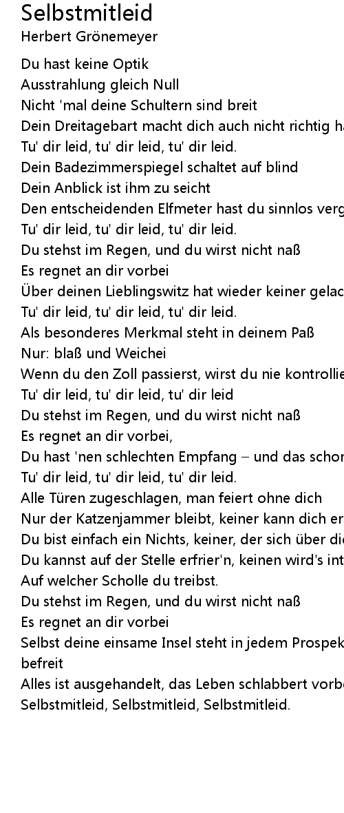 | Selbstmitleid, Selbstmitleid, Selbstmitleid. |