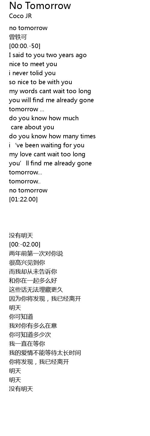 | [01:10.26] | no tomorrow |